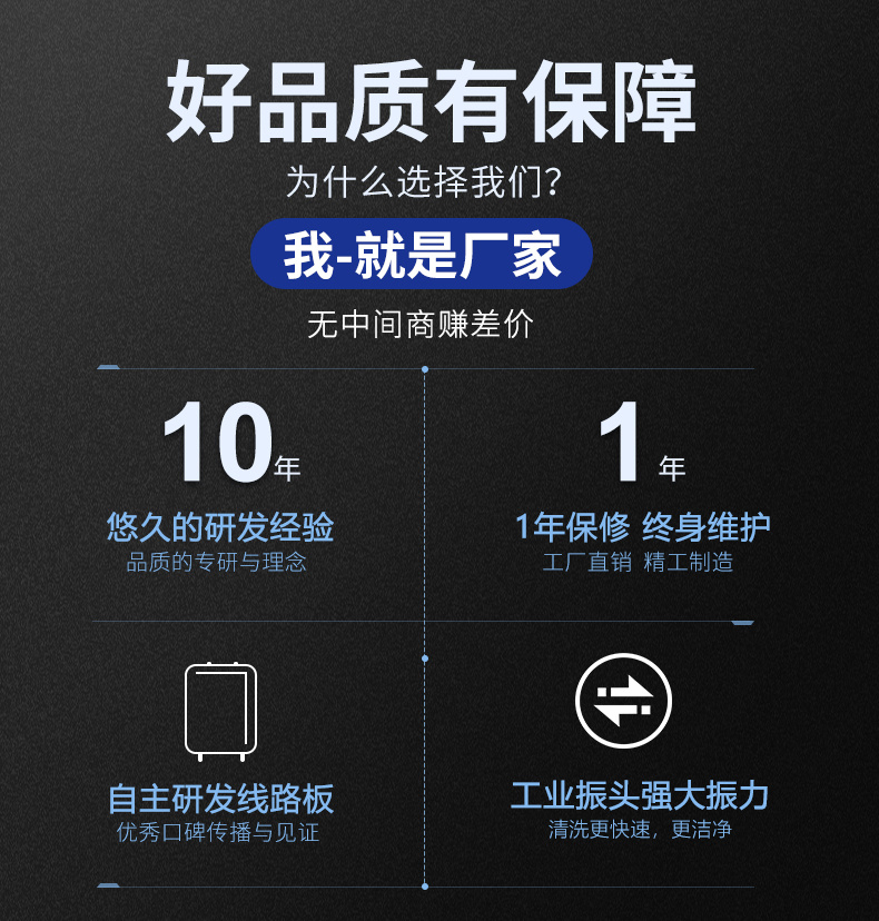 - 升級換能器:采用工業(yè)震頭,力度強勁,性能穩(wěn)定;