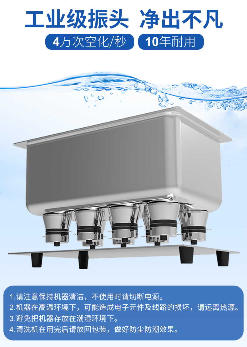 - 超聲波清洗機與清洗劑一起使用,清洗效果更佳!