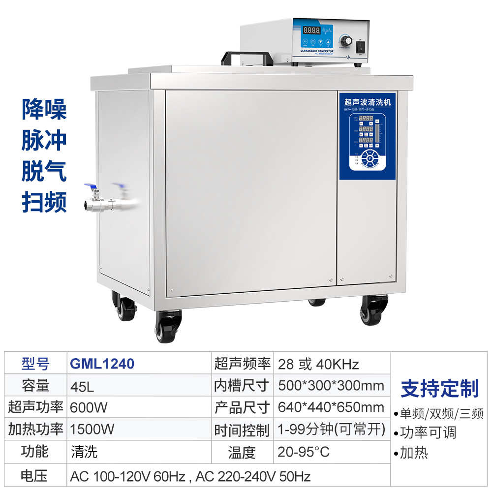 冠博仕GML1240單槽降噪多頻定制工業(yè)機(jī) | 45L/600W | 多功能超聲波清洗機(jī)降噪脫氣掃頻脈沖單槽工業(yè)機(jī)