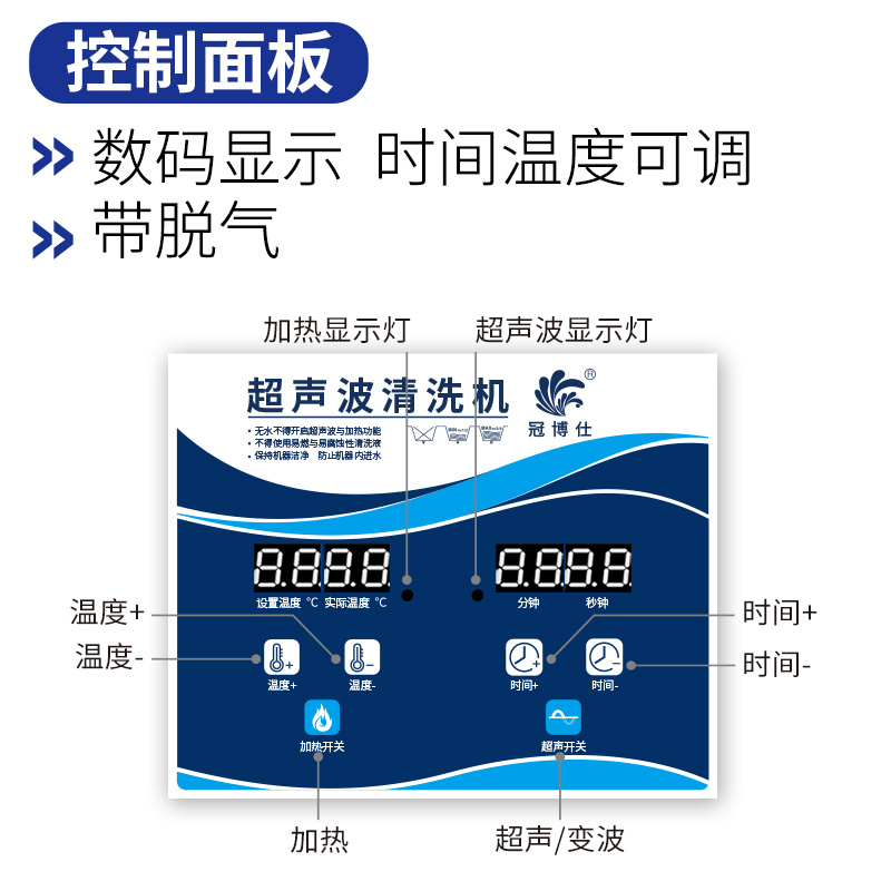 - 數(shù)碼顯示:數(shù)碼顯示清洗時間且有倒計時讀秒功能;